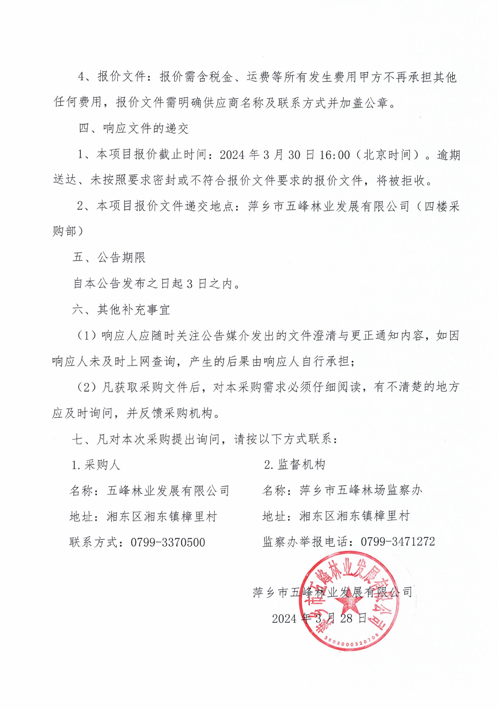 萍鄉(xiāng)市五峰林業(yè)發(fā)展有限公司2025年度供應(yīng)商招募啟事