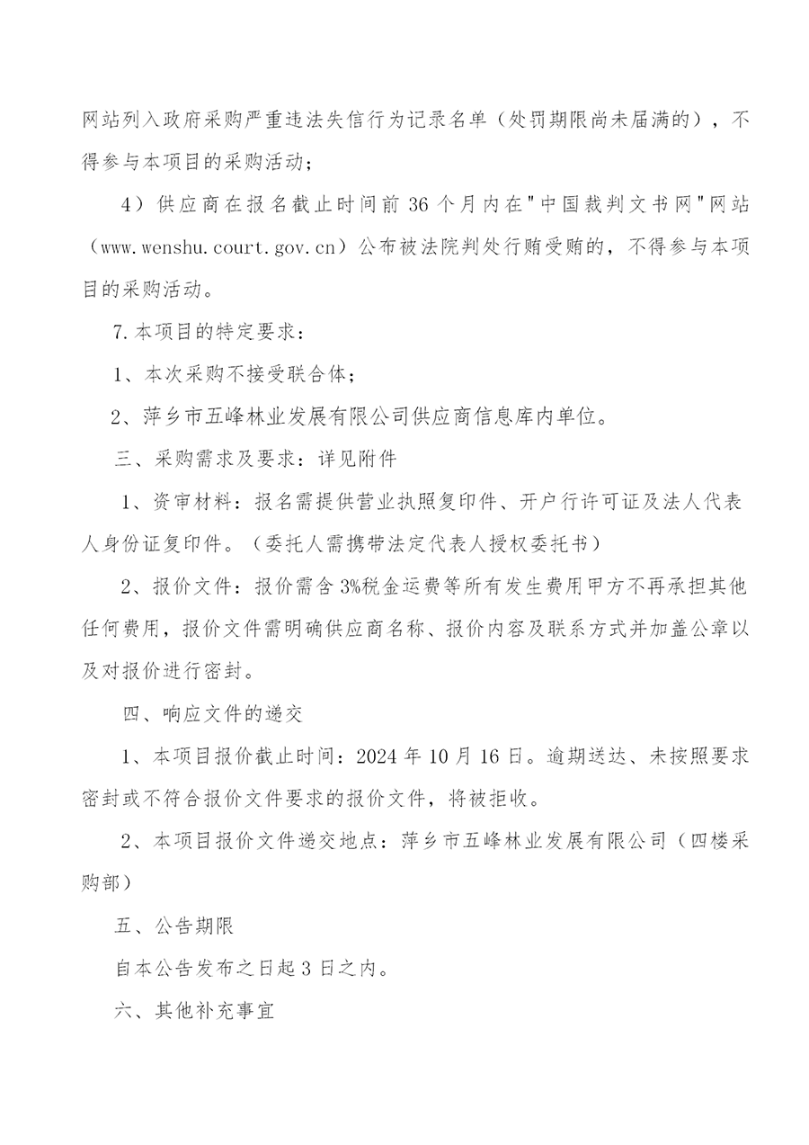 萍鄉(xiāng)市五峰林業(yè)發(fā)展有限公司2025年度供應(yīng)商招募啟事